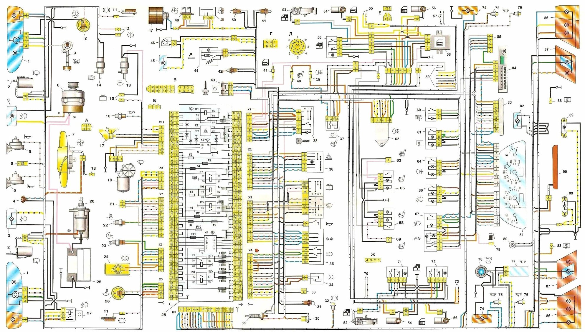 88 - колодка для подключения к элементу обогрева заднего стекла;