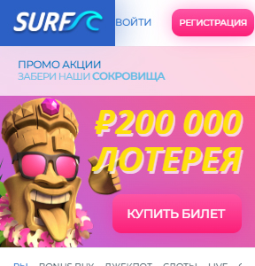 Surf – активно развивающееся казино. За годы своей работы оно сумело заработать хорошую репутацию и доверие пользователей. Новичкам стоит изучить актуальную на Март 2026 года информацию, которая поможет ближе познакомиться с ресурсом и сорвать крупный куш.